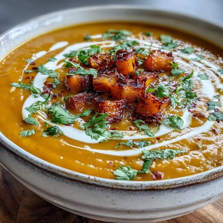 The roasted butternut squash is what separates this soup from feeling ordinary. When you roast instead of boil, the squash's natural sugars caramelize at the edges, creating depth and complexity that raw or boiled squash simply cannot deliver. I learned this the hard way after making a version without roasting and feeling disappointed by how flat and one-dimensional it tasted. Now I never skip this step, even when I'm in a rush—the extra 30 minutes makes all the difference between a soup that tastes like Sunday and one that tastes like obligation.