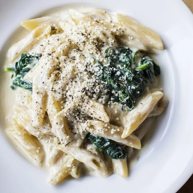 Pin it There's something about the smell of garlic hitting hot oil that makes you feel like you've got your life together, even on nights when you're barely awake. I discovered this creamy spinach pasta during one of those rushed evenings when I opened the fridge and found wilting spinach, cream that needed using, and absolutely no appetite for takeout. Twenty minutes later, I had something so silky and comforting that my partner asked me for the recipe before even finishing their plate. That's when I knew this wasn't just dinner—it was the kind of dish that quietly becomes a favorite.