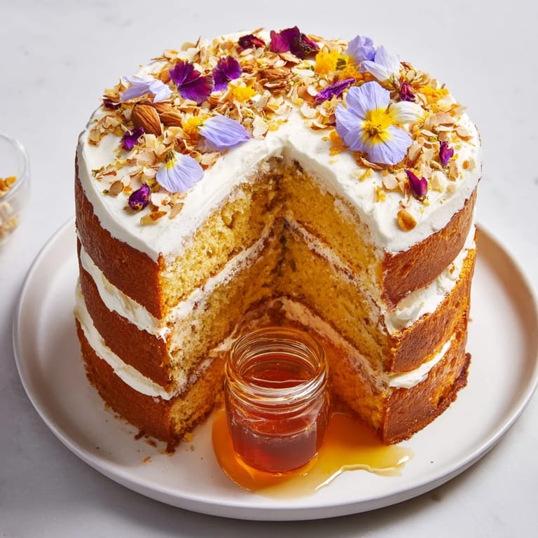 Pin it The first time I watched honey melt across a warm plate, I became obsessed with the idea of building an entire dessert around that moment. There's something almost theatrical about honey in its liquid state—the way it catches light, how it moves with its own rhythm. This cake came from wanting to create that spectacle at the center of a dinner table, surrounded by layers of tender, honey-sweetened cake that guests could tear into and dip with abandon.