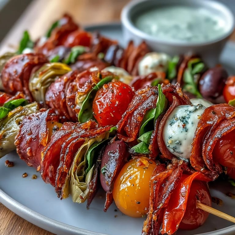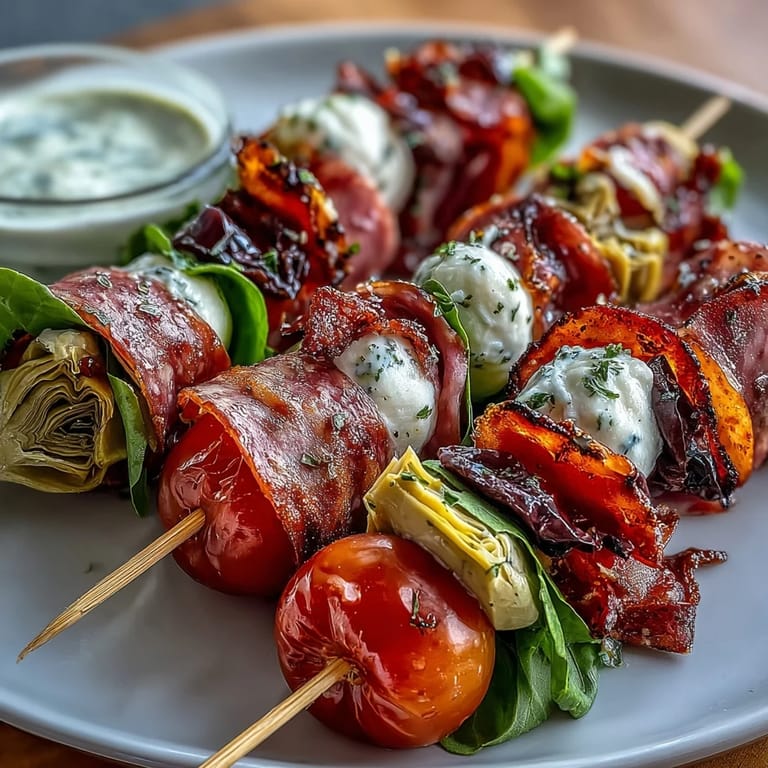 The beauty of these skewers is that they're a template, not a prison. I've swapped in roasted turkey for mortadella on lighter days, added grilled zucchini ribbons for vegetarian friends, and even experimented with sun-dried tomatoes instead of fresh. The key is keeping that balance of cured, fresh, creamy, and bright—as long as you honor those four categories, you can't really go wrong.