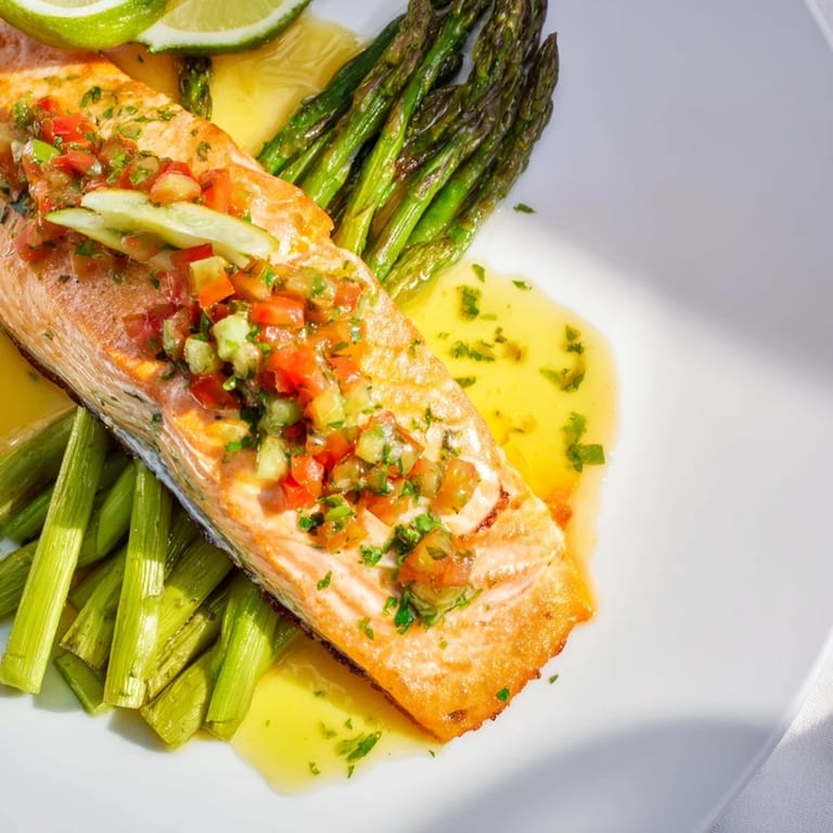 Pin it Succulent salmon fillets and tender asparagus are seared in a zesty lemon-butter sauce for a bright, cozy dinner ready in just 30 minutes. Perfect for weeknights and bursting with fresh citrus flavor.