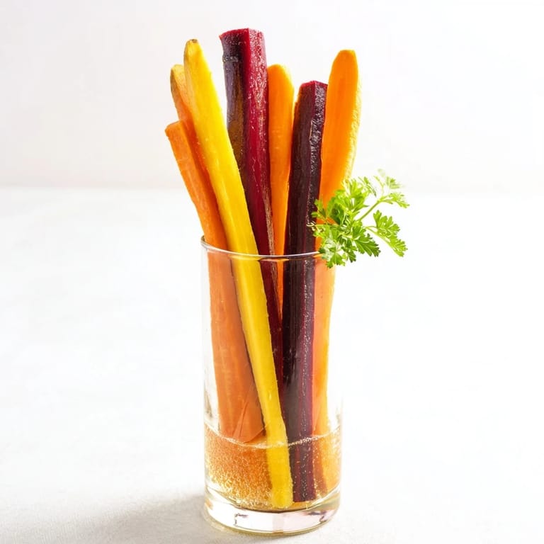 Feel free to substitute any unavailable carrot colors with the others or add in other crunchy vegetables such as celery, cucumber, or bell pepper sticks for variety and extra flavor. The garnish can also be varied with your favorite fresh herbs or microgreens.