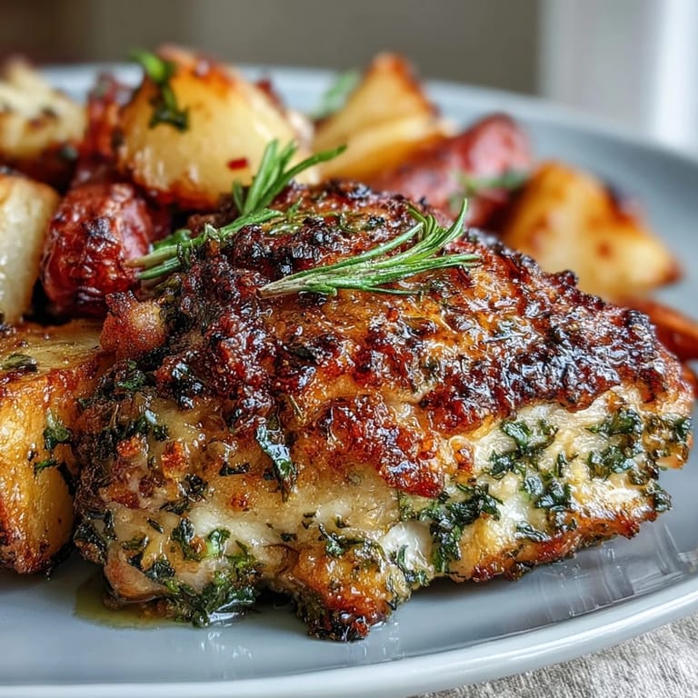 Pin it There's something almost meditative about standing in front of a sheet pan, arranging vegetables like you're composing a small edible landscape. I stumbled onto this herb-crusted chicken one autumn evening when I had just enough fresh herbs from the garden and a handful of root vegetables that needed using. The magic happened the moment those chicken breasts hit the pan surrounded by caramelizing carrots and sweet potatoes—the kitchen filled with this intoxicating blend of rosemary and thyme that made everyone pause and ask what was cooking.