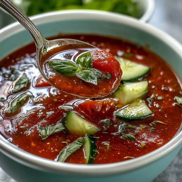 Pin it There's a particular afternoon in August when my kitchen felt too hot to use the stove, so I started chopping vegetables almost without thinking—tomatoes, cucumber, bell pepper—and tossing them into the blender with olive oil and vinegar. What emerged was this luminous, chilled soup that tasted like summer itself, cool and bright and so simple I wondered why I'd never made it before. My neighbor came over complaining about the heat, and I handed her a bowl without explanation; she was quiet for a moment, then asked for seconds.