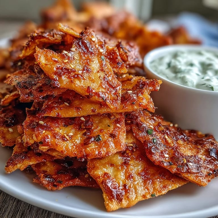 Pin it My neighbor knocked on my door one evening with a jar of homemade chili crisp, insisting I had to try it on something crispy. I rummaged through my freezer and found garlic naan, then realized I could turn both into something spectacular. Within twenty minutes, I had golden, shattered chips and a cool yogurt dip that somehow bridged Indian and Asian flavors without feeling forced. That night became the template for this recipe—proof that the best ideas come from happy accidents and generous neighbors.