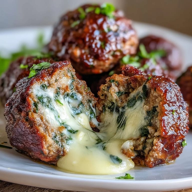 Pin it The first time I stuffed a meatball with cheese, I stood in front of the oven watching through the glass door like it was a television show. When I bit into that first one and molten mozzarella escaped onto my plate, I knew I'd never make plain meatballs again. These became our Friday night staple, the kind of dinner where everyone reaches for seconds without being asked. My daughter now asks for 'the exploding ones' by name, which I've decided is a compliment.