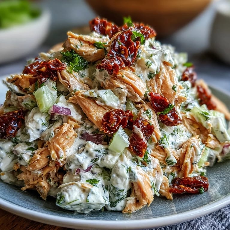 Pin it I threw this together on a Tuesday afternoon when the fridge was full of random bits and nothing looked good for lunch. The sun-dried tomatoes caught my eye—those little oil-packed jewels I keep buying for ambitious recipes that never happen—and suddenly I was chopping and whisking something that turned into absolute magic. My husband walked in, took one bite, and asked if we could have this every week for the rest of our lives. Now it's the lunch I actually look forward to meal prepping.