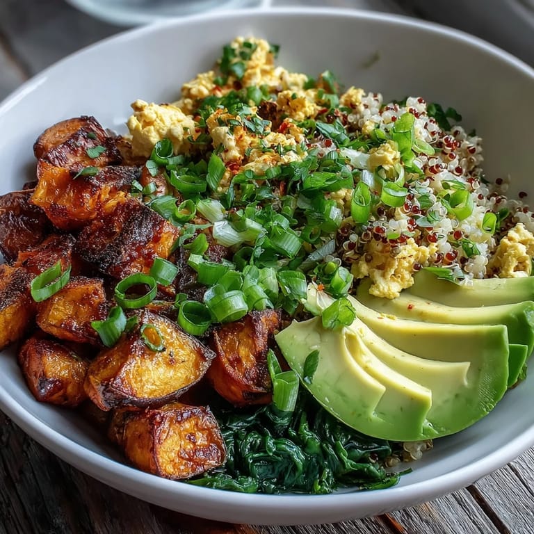 Pin it One Sunday morning, I stood in my kitchen staring at a block of tofu, wondering if I could actually make something that tasted like breakfast instead of just tasting like, well, tofu. A friend had challenged me to stop ordering the same avocado toast every weekend, so I decided to build an entire bowl around crispy roasted sweet potatoes and scrambled tofu that somehow tasted savory and almost eggy. That first attempt was messy, the turmeric stained my cutting board, and I nearly burned the spinach, but when I finally assembled everything in a bowl, I realized I'd created something I actually wanted to eat again.